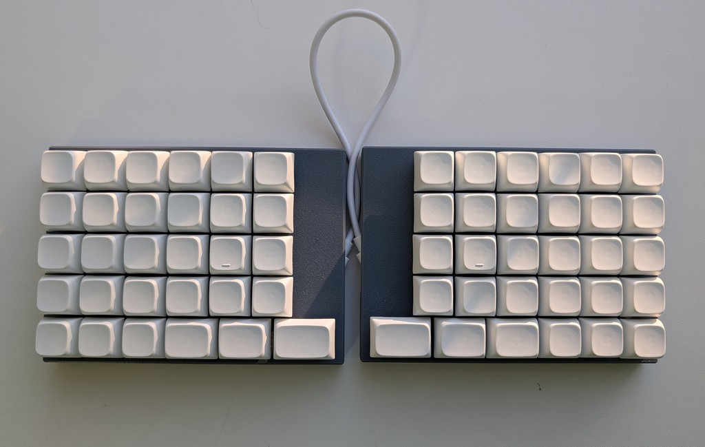 Ортолинейная версия сплит-клавиатуры Корнедеон без стаггера (смещения столбцов). 60 клавиш в сочетании с прошивкой QMK/Vial предоставляют широкие возможности настройки раскладки.
