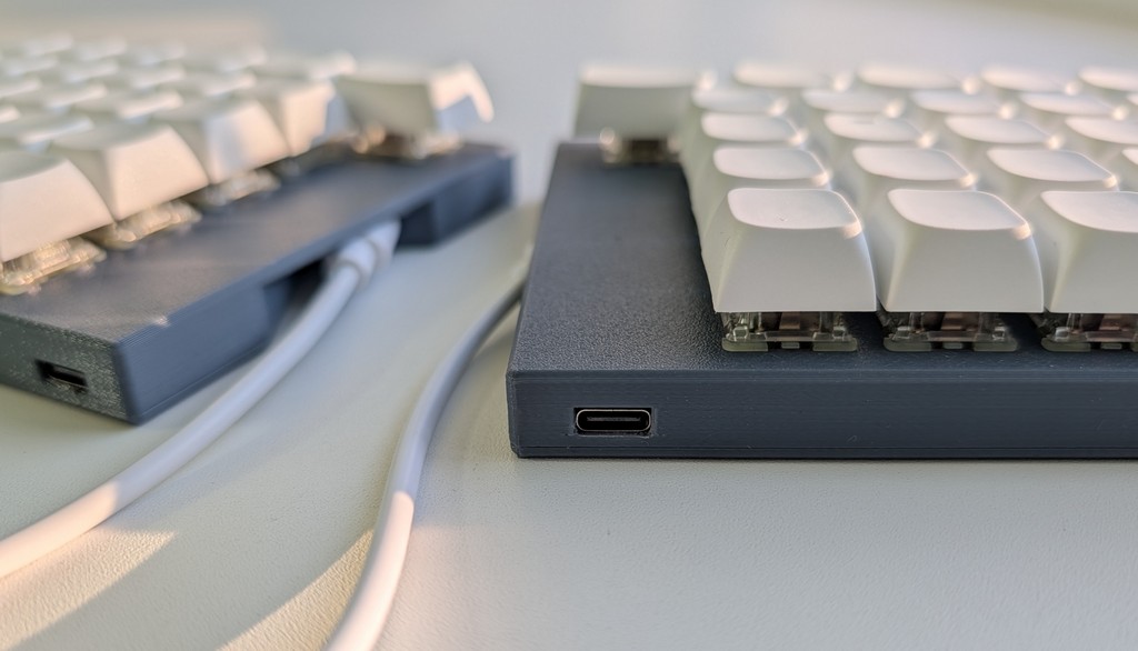 - Соединение половинок стандартным кабелем USB Type C. Дуплексная передача данных.